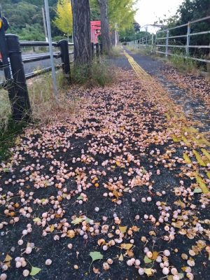季節を感じながらも、慎重に歩かなければならない秋の風物詩ですね。