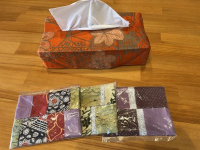 着物の布を使って手作りされたティッシュケースです。