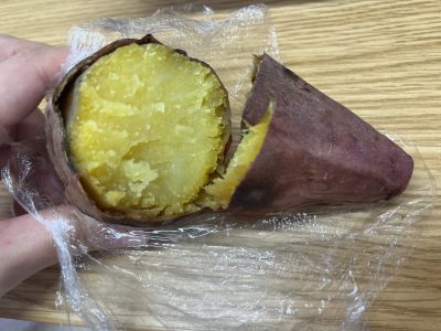 以前、お客様との雑談の中でご自宅に焼き芋器があるというお話を聞いていたことがあり食べてみたいなと思っていた所、焼き芋を作って差し入れしていただきました。